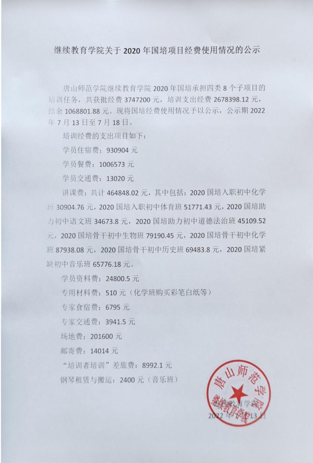 jinnianhui今年会关于2020年国培项目经费使用情况的公示